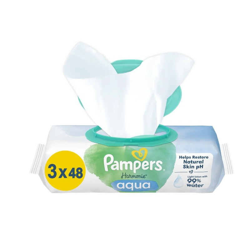 Les lingettes Pampers Harmonie Aqua nettoient la peau de bébé avec la plus grande douceur.