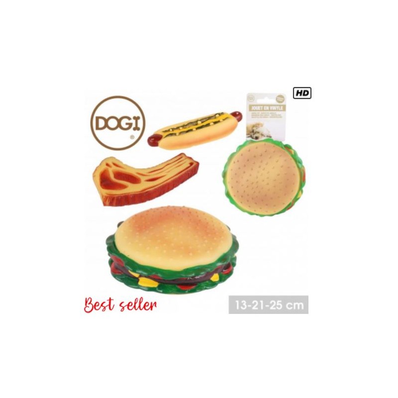 Découvrez nos jouets pour chien XL en vinyle, disponibles en modèles aléatoires : hamburger, côtelette ou hot-dog. Ces jouets robustes sont conçus pour résister aux morsures et offrir des heures de divertissement à votre compagnon à quatre pattes. Ils sont parfaits pour les jeux de lancer, de tirer et de mâcher. Offrez à votre chien un plaisir durable et varié avec ces jouets colorés et amusants. Taille XL pour les chiens de toutes tailles. Faites de chaque instant un moment de jeu et de complicité avec JJouet !