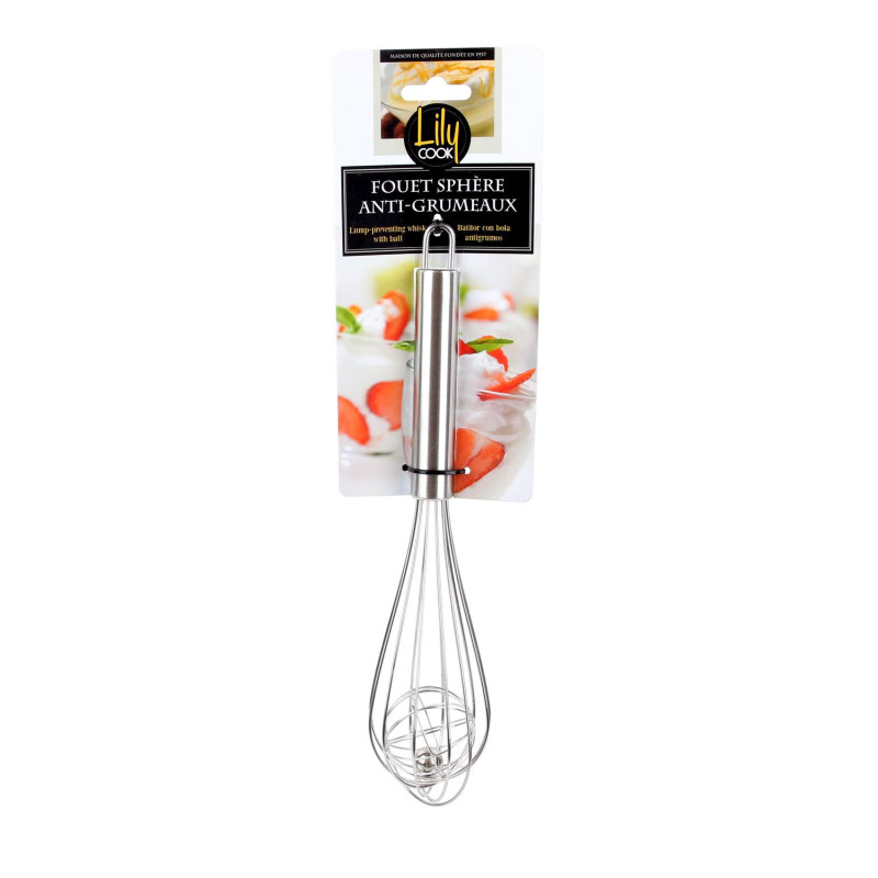 Questa frusta con sfera anti-grumi è l’arma segreta per ottenere impasti lisci e omogenei. La sfera centrale rompe efficacemente i grumi di farina o polveri, rendendo perfette salse, creme e pastelle. Leggera, ergonomica e in acciaio inox, è pensata per durare e resistere a un uso quotidiano.