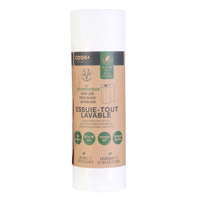 Réutilisable. lavable. résistant et ultra-absorbant. ce papier essuie-tout va vous épater ! - 20 feuilles - 28x30 cm - Lavage 30° - Longue tenue - Plus économique que les rouleaux jetables !
