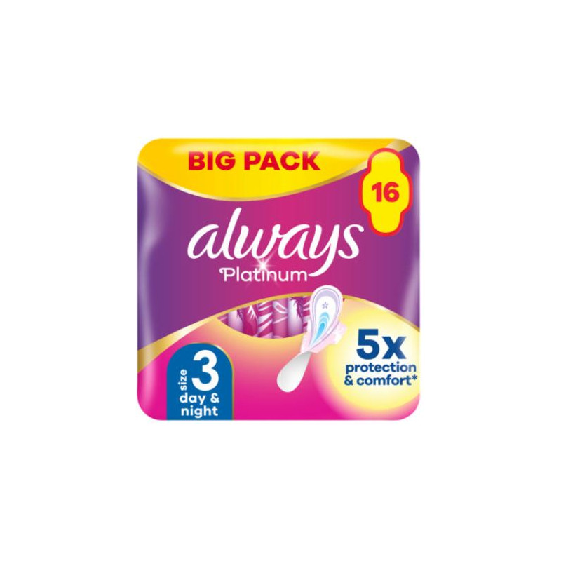 Always Platinum – Taille 3 Day & Night – Serviettes Hygiéniques avec Ailettes – 16 pièces