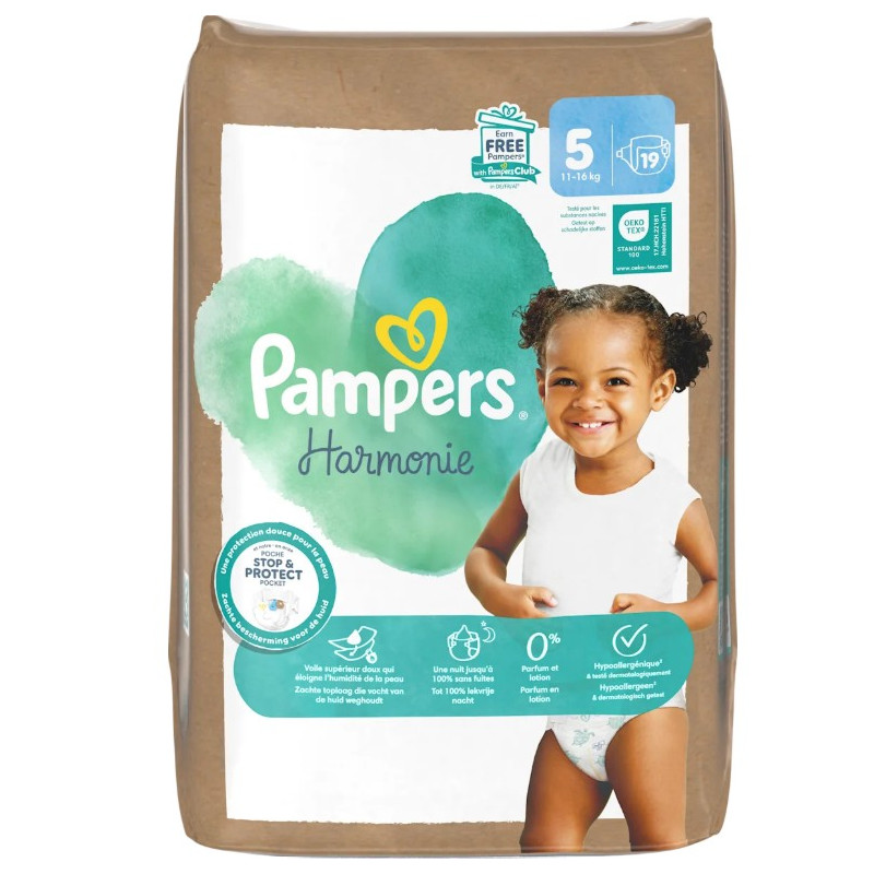 I Pampers Harmonie Taglia 5 (11–16 kg) offrono al tuo bambino una protezione naturale e delicata.