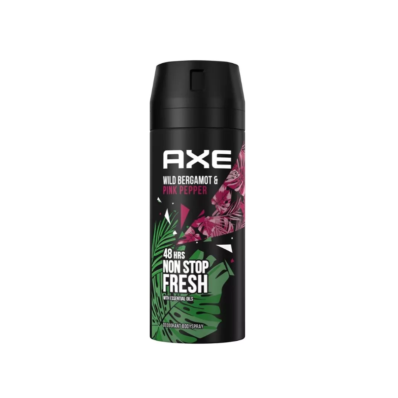 Sperimenta lo AXE Wild Bergamot & Pink Pepper – 150 ml, un body spray maschile dalle note bergamotto fresco, pepe rosa vivace e legno di quercia, progettato per neutralizzare gli odori grazie allo zinco, senza effetto mascheramento e con una freschezza duratura fino a 48 ore