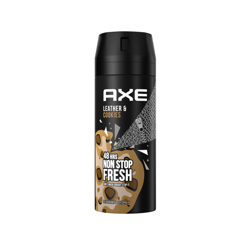 Scopri AXE Leather & Cookies – 150 ml, un body spray maschile con un profumo caldo e originale di cuoio e biscotti dolci, impreziosito da note di vaniglia e cardamomo. Formula senza alluminio con zinco per neutralizzare gli odori per 48 ore, senza lasciare residui visibili.