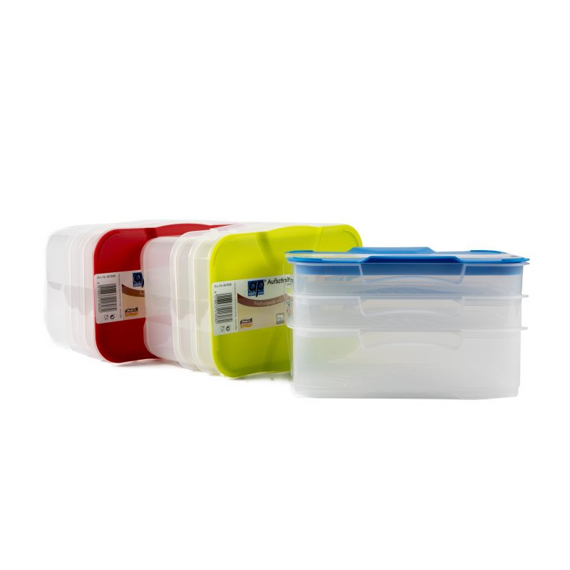 De set van 3 koelkastbakjes met gekleurde deksels houdt uw eten vers en uw koelkast georganiseerd. Dankzij het stapelbare ontwerp bespaart u ruimte en behoudt u overzicht. De gekleurde deksels maken het makkelijk om de inhoud te herkennen, terwijl het duurzame kunststof zorgt voor langdurig gebruik.