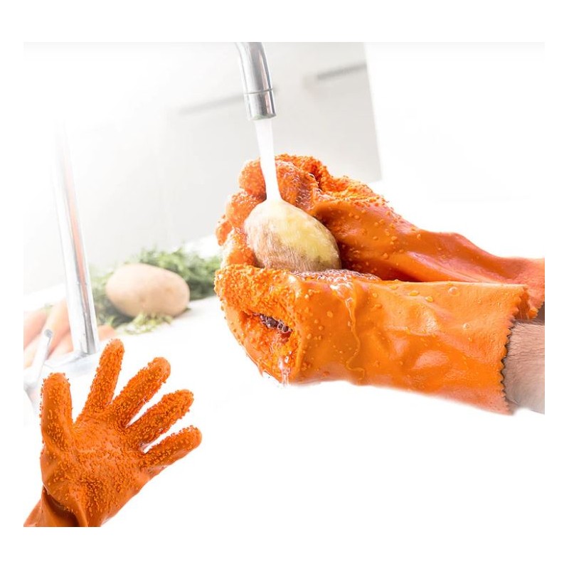 Vous devez avoir dans votre cuisine les gants nettoyants éplucheurs de fruits et légumes InnovaGoods Kitchen Foodies !