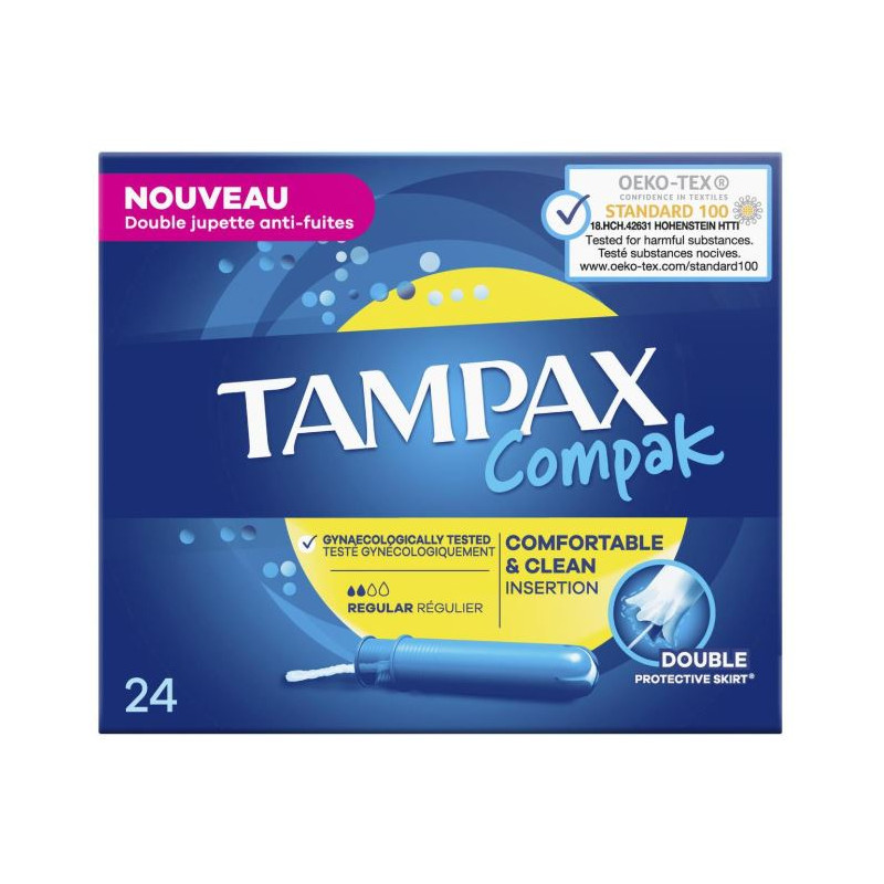 De Tampax Compak Regular (24 stuks) bieden comfortabele bescherming voor de lichtere tot normale menstruatiedagen.